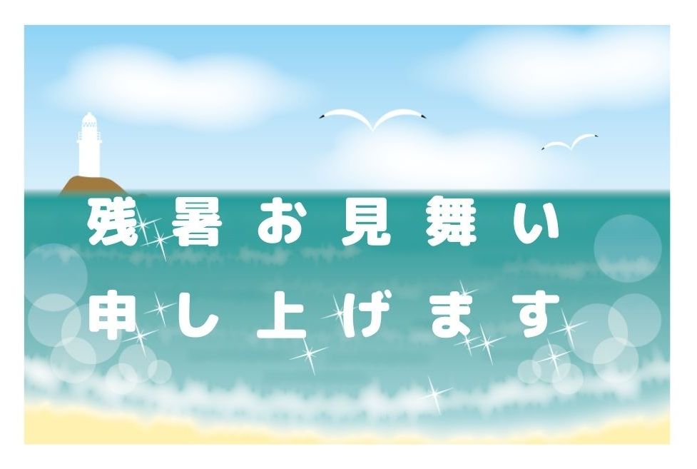 「残暑お見舞い申し上げます」無料ラインスタンプ【海と空 波 カモメ】