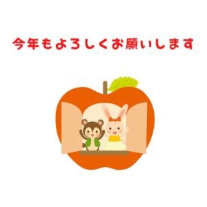 「うさぎの年賀状」無料ラインスタンプ「うさぎとリスとりんごの家 今年もよろしくお願いします 卯年 2023年」