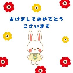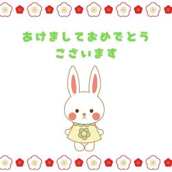 年賀状あけおめLINEスタンプ 「うさぎの年賀状」無料ラインスタンプ「うさぎ あけましておめでとうございます 梅の花 卯年 2023年