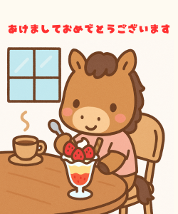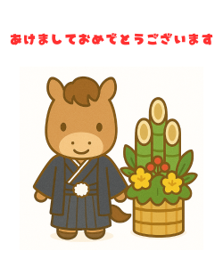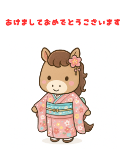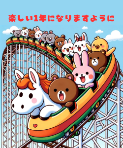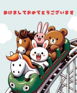 「午年馬の年賀状」無料ラインスタンプ「馬 ジェットコースター あけましておめでとうございます 2026年午年 かわいい馬」→無料ラインスタンプダウンロード