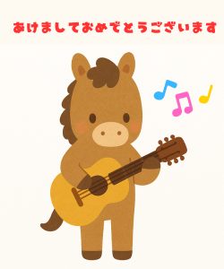年賀状あけおめLINEスタンプ 「午年馬の年賀状」無料ラインスタンプ「馬 ジェットコースター あけましておめでとうございます 2026年午年 かわいい馬」